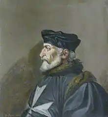 Philibert de Naillac was born about 1340 of a noble family.[2] But little is known of his personal history.[2] He became master of the Order of the Knights of St. John of Jerusalem in 1376, and engaged in the Crusades, and was greatly distinguished by his valour and skill in warfare.[2] He was prominently engaged in the battle of Nicopolis, and served the Christian interests by his treaties with the Saracens.[2] Thus he concluded a treaty with the sultan of Egypt, which gave the Christians permission to enclose the Holy Sepulchre at Jerusalem with a wall; to maintain six knights of the Order of St. John within the city, free from all tribute, who should be permitted to carry on the hospitable duties of their profession in favour of all pilgrims led thither by devotion; that Christian slaves might be redeemed, either by purchase or by exchange with a Saracen; and that convents might be maintained in Jerusalem and in the other principal cities of the Holy Land.[2] In 1415 internal dissension threatened the very existence of the Order of St. John.[2] Naillac's wise counsels prevented all disgraceful proceedings; and when he died, in 1421, "he left the fraternity, at whose head he had been placed for so many years, at union with itself, at peace with its neighbours, and in a most flourishing state of prosperity."[2]