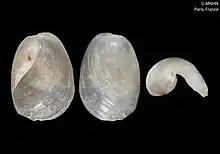 P. quadripartita occurs in the NE Atlantic and Mediterranean described from Arendal, Norway, and P. aperta is restricted to the Indian Ocean side of the Cape peninsula of South Africa. The snail has a thin, cone-shaped shell that is typically about 5–7 mm (0.20–0.28 in) in length, with four distinct whorls. Its shell is pale yellow to brown in color, and is covered in small, raised scales. The snail's head and foot are both brown, and it has a small, fleshy mantle that covers the opening of its shell.[4][5]
