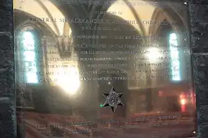 A brass memorial plaque to his memory lies on the south aisle of St Mary's Cathedral, Edinburgh (Episcopal).