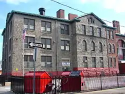 Built between 1899 and 1900, this historic structure is a three-story, five-bay, stone-and-brick building that was designed in the Colonial Revival style. It features a stone entrance pavilion, Palladian windows, and large arched openings. Three-story wings were added 1902 and 1910.[2]