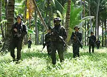 In 2012 the Philippines and the United States conducted joint military exercises.[63] As of 2012, a U.S. military contingent of 600, including Navy Seals and Seabees are stationed "indefinitely" in the Southern Philippines, in a declared non-combatant role to assist the Armed Forces of the Philippines in operations against the al-Quaida-linked Abu Sayyaf terrorist group primarily on the island of Basilan in western Mindanao and the Sulu islands, in particular Jolo, a long-time stronghold of Abu Sayyaf.[64]