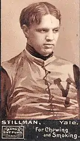 Stillman enrolled at Yale College in approximately 1892 as a transfer student for his junior year.[1][2][7] He played for three years on the Yale Bulldogs football team.[6] He was the center on the 1894 Yale Bulldogs football team that compiled a 16–0 record and was retroactively named co-national champions by the Billingsley Report, Helms Athletic Foundation, National Championship Foundation, and Parke H. Davis.[8] At the end of the 1894 season, Stillman was a consensus choice as a first-team player on the 1894 College Football All-America Team.[9] Caspar Whitney, published in Harper's Weekly magazine, and Leslie's Weekly by John D. Merrill.[10]