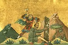 The ecclesiastical administration paralleled the political, but with some differences. When the province was divided c. 394, Damascus, rather than Emesa, became the metropolis of Phoenice II. The province belonged to the Patriarchate of Antioch, with Damascus initially outranking Tyre, the capital of Phoenice I, whose position was also briefly challenged by the see of Berytus c. 450; after 480/1, however, the Metropolitan of Tyre established himself as the first in precedence (protothronos) of all the Metropolitans subject to Antioch.[7] In February 452[lower-alpha 2] the alleged head of John the Baptist was discovered in the monastery of Spelaion, in the diocese of Emesa, in Phoenice II.[23] Following this event, Emesa—which had first been a suffragan of Damascus[24]—was "probably raised to the rank of honorary [ecclesiastical] metropolis of Lebanese Phoenicia in the second half of the fifth century" according to Julien Aliquot.[9]