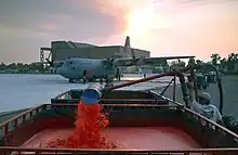 Phos-Chek fire retardants are manufactured as dry powders or as concentrated liquids and diluted with water prior to use.[4] The retardant is applied ahead of wildfires to homes[5][6] and vegetation by ground crews and aerial firefighting units, either fixed-wing or rotary-wing aircraft.[7] As of 2022, Phos-Chek LC-95A is the most used fire retardant in the world.[8]