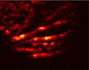 where is the optical wavelength and is the numerical aperture of the optical objective lens.[2] The lateral resolution of OR-PAM can be improved by using a shorter laser pulse and tighter focusing of the laser spot. OR-PAM systems can typically achieve a lateral resolution of 0.2 to 10 μm, allowing OR-PAM to be classified as a super-resolution imaging method.