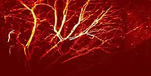 Photoacoustic microscopy is an imaging method based on the photoacoustic effect and is a subset of photoacoustic tomography. Photoacoustic microscopy takes advantage of the local temperature rise that occurs as a result of light absorption in tissue. Using a nanosecond pulsed laser beam, tissues undergo thermoelastic expansion, resulting in the release of a wide-band acoustic wave that can be detected using a high-frequency ultrasound transducer.[1] Since ultrasonic scattering in tissue is weaker than optical scattering, photoacoustic microscopy is capable of achieving high-resolution images at greater depths than conventional microscopy methods. Furthermore, photoacoustic microscopy is especially useful in the field of biomedical imaging due to its scalability. By adjusting the optical and acoustic foci, lateral resolution may be optimized for the desired imaging depth.[2]