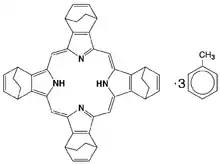 Chemical structure of (1,4:8,11:15,18:22,25-tetraethano-29H,31H-tetrabenzo[b,g,l,q]porphyrin (CP).