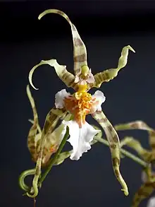 Phymatochilum brasiliense, whose flowers are very similar to the ones of Oncidium was in fact considered a member of this genus until 2001 when, based on the results of their molecular analysis, it was moved by Norris Williams and Mark Chase to the genus Miltonia. On the transfer publication they claim that, despite the morphologic differences, the relationship is very close and, supposedly, they did not want to propose a new genus to subordinate one species only.[7] As this species shows a morphology that is closer to Oncidium species than to Miltonia, because of its small yellowish flowers and highly branched inflorescence, this result and following transfer was a great surprise to most taxonomists. Therefore, in 2005, Eric Christenson suggested a new genus and the name Phymatochilum brasiliense for it.[8] There is no consensus about the name to be generally accepted as yet.