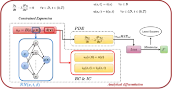 In the PINN framework, initial and boundary conditions are not analytically satisfied, thus they need to be included in the loss function of the network to be simultaneously learned with the differential equation (DE) unknown functions. Having competing objectives during the network's training can lead to unbalanced gradients while using gradient-based techniques, which causes PINNs to often struggle to accurately learn the underlying DE solution. This drawback is overcome by using functional interpolation techniques such as the Theory of Functional Connections (TFC)'s constrained expression, in the Deep-TFC framework, which reduces the solution search space of constrained problems to the subspace of neural network that analytically satisfies the constraints.[19] A further improvement of PINN and functional interpolation approach is given by the Extreme Theory of Functional Connections (X-TFC) framework, where a single-layer Neural Network and the extreme learning machine training algorithm are employed.[20] X-TFC allows to improve the accuracy and performance of regular PINNs, and its robustness and reliability are proved for stiff problems, optimal control, aerospace, and rarefied gas dynamics applications.[21][22][23]