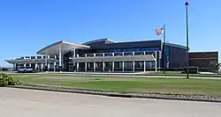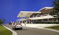 A new terminal had been needed for many years, as the old terminal building was plagued by a number of problems, primarily space constraints. Construction on the new terminal began in late spring of 2011 and was completed in September of 2012.[5] Denver-based Coover-Clark & Associates, Inc. designed the building, and Kadrmas Lee & Jackson's Rapid City office handled the construction administration.[6] Initially, a jet bridge was to be installed at the terminal, but airport officials decided to wait until a scheduled commercial airline could use the jet bridge, as Great Lakes Airlines aircraft serving the airport at the time were not jet bridge capable. Officials also waited because Pierre had been without scheduled passenger jet service operated with mainline aircraft for over 30 years. The new terminal building was designed with the space set aside for a loading bridge, so it required very little effort to install one when the time came.