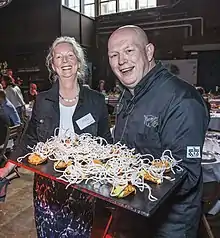 Petrus Marinus Maria (Pierre) Wind (The Hague, 24 March 1965) is a Dutch cook who became well-known for his cooking programs on television.[3] In 1997, TV producer Henriette Theunissen discovered him, and started the series De Eetfabriek (NPS) (1997-2000) with Wind as presenter, and Jahaga Bosscha.