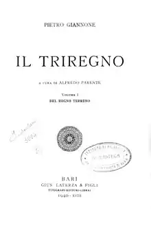 This article incorporates text from a publication now in the public domain: Chisholm, Hugh, ed. (1911). "Giannone, Pietro". Encyclopædia Britannica. Vol. 11 (11th ed.). Cambridge University Press. p. 925.