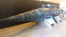 While the United States Navy was constructing its first submarine, USS Alligator, during the American Civil War in late 1861, the Confederates were doing so as well. Horace L. Hunley, James McClintock, and Baxter Watson built Pioneer in New Orleans, Louisiana. It was the first of three submarines financially backed by Hunley (Pioneer, Pioneer II, and Hunley).[1] The Pioneer was thirty feet long and four feet in diameter.[2] The crew consisted of a pilot and one man to rotate the propeller manually. It was equipped with an explosive that would be attached to the hull of an enemy vessel and blown up using a clockwork mechanism.[3] Pioneer was tested in February 1862 in the Mississippi River, and later was towed to Lake Pontchartrain for additional trials where it successfully managed to sink a schooner,[4] but the Union advance towards New Orleans the following month prompted the men to abandon development and scuttle Pioneer in the New Basin Canal on 25 April 1862.[5] The team followed with the Pioneer II or American Diver, built after they relocated to Mobile, Alabama.