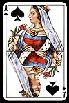 The queen of spades (Q) is one of 52 playing cards in a standard deck: the queen of the suit of spades (). In Old Maid and several games of the Hearts family, it serves as a single, powerful card in the deck.