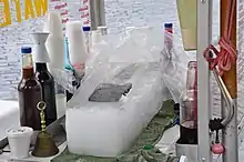 The piragüero makes the treats from the shavings off a block of solid ice inside his cart[5] and mixtures of fruit-flavored syrups.[6] The tropical syrup flavors vary from lemon and strawberry to passion fruit and guava. Once the syrups are ready, the piragüero will go to his place of business, which in Puerto Rico is usually close to the town plaza, while in the United States it is usually close to the public parks near Hispanic neighborhoods, to sell his product.[5]