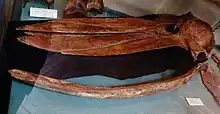 Piscobalaena is an extinct genus of cetaceans, which lived from the Middle to Late Miocene epochs (about 11.6 to 5.3 million years ago) in Peru and Florida.[1] Its fossils have been found in the Pisco Formation of Peru and the Bone Valley Formation of Florida.[2] At least some individuals of this diminutive whale were preyed on by the shark O. megalodon.[3]