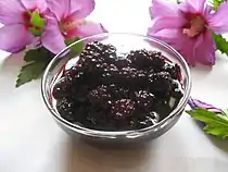 Fruits that are traditionally associated with Albanian cuisine include apple, grape, olive, orange, nectarine, blackberry, cherry, persimmon, pomegranate, figs, watermelon, avocado, lemon, peach, plum, strawberries, raspberry, mulberry and cornelian cherry.
