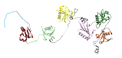 ![]() Crystal structure of the cytoplasmic form of human Gelsolin (3FFN) | |||||||||||