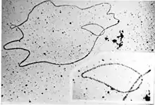 The term plasmid was introduced in 1952 by the American molecular biologist Joshua Lederberg to refer to "any extrachromosomal hereditary determinant."[9] The term's early usage included any bacterial genetic material that exists extrachromosomally for at least part of its replication cycle, but because that description includes bacterial viruses, the notion of plasmid was refined over time to comprise genetic elements that reproduce autonomously.[10] Later in 1968, it was decided that the term plasmid should be adopted as the term for extrachromosomal genetic element,[11] and to distinguish it from viruses, the definition was narrowed to genetic elements that exist exclusively or predominantly outside of the chromosome and can replicate autonomously.[10]