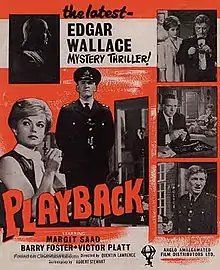 Playback is a 1962 British crime film directed by Quentin Lawrence and starring Margit Saad, Barry Foster and Nigel Green. It was based on a short story by Edgar Wallace[1] Part of the Edgar Wallace Mysteries film series made at Merton Park Studios, the film's sets were designed by the art director Peter Mullins.