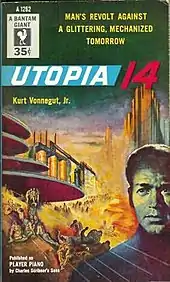 Player Piano is the first novel by American writer Kurt Vonnegut Jr., published in 1952. The novel depicts a dystopia of automation partly inspired by the author's time working at General Electric, describing the negative impact technology can have on quality of life.[2] The story takes place in a near-future society that is almost totally mechanized, eliminating the need for human laborers. The widespread mechanization creates conflict between the wealthy upper class, the engineers and managers, who keep society running, and the lower class, whose skills and purpose in society have been replaced by machines. The book uses irony and sentimentality, which were to become hallmarks developed further in Vonnegut's later works.[2]