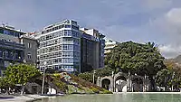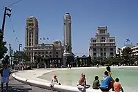 Plaza de España (lit. Spain Square), is the largest square in the city of Santa Cruz de Tenerife and the Canary Islands (Spain). The square is located in the centre of town, 1.4 km north of the Auditorio de Tenerife. This square is considered one of the "main squares" of the island of Tenerife, together with the Plaza del Cristo de La Laguna in San Cristóbal de La Laguna and the Plaza de la Patrona de Canarias in Candelaria. It hosts an artificial lake fountain, a work of Swiss architects Herzog & de Meuron.