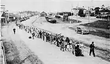 "Pleasant Point" was not always the town's name, during the early 1800s wagoners would travel from Timaru to the Mackenzie Country, to access its rich hunting grounds.[8] These trips would take three to six weeks for a return trip, as the land was mainly tussock, flaxes and matagouri, with few tracks. These wagoners would stop at camps along the way, a popular one being "The Point." The "point" itself is unknown and often left up to speculation and theories. These include the "point" being the place at which the TeNgawai and Opihi rivers meet. One theory suggests the "point is the cut in the hill, possible at the foot of Manse Road, as this is where the town grew from. "The Point" grew into one of the most popular camps along the route. Campers started referring to it as "Pleasant Point" due to its access to food and water for the horses, a fully stocked hotel and pleasant surroundings.