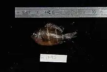 They have a total of 12 dorsal spines, 16-17 dorsal soft rays, 2 anal spines, and 13-14 anal soft rays. They grow to a maximum length of 9 centimetres (3.5 in).[2]