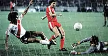 At the 1986 FIFA World Cup, Poland were drawn into a group with England, Morocco and Portugal.[24] The first match was a 0–0 draw against Morocco; in the second match, Poland beat Portugal 1–0.[25][26] In the final group game, they lost 0–3 to England, but Poland still advanced into the knockout stage as a result of Morocco winning 3–1 over Portugal.[27][28] In the round of sixteen, Poland were eliminated after suffering a 4–0 defeat to Brazil.[29]