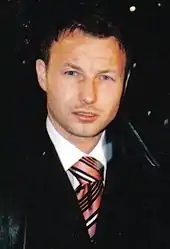 In Euro 2008 qualifying, Poland were drawn into a group with Portugal, Serbia, Finland, Belgium, Kazakhstan, Armenia and Azerbaijan.[86] Poland's campaign began in uncomfortable fashion, suffering a 1–3 defeat to Finland on 2 September 2006 and then drawing 1–1 with Serbia on 6 September.[87][88] In the third match, on 7 October, Poland won 1–0 over Kazakhstan, with Ebi Smolarek scoring the goal.[89] On 11 October, Poland beat Portugal 2–1, with Smolarek scoring the two goals.[90] Poland beat Belgium 1–0 on 15 November.[91] On 24 March 2007, Poland beat Azerbaijan 5–0, and on 28 March beat Armenia 1–0.[92][93] On 2 June, they beat Azerbaijan 3–1, with Smolarek and Krzynówek (2) scoring.[94] On 6 June, Poland lost 1–0 to Armenia, on 8 September drew 2–2 with Portugal, and on 12 September drew 0–0 with Finland.[95][96][97] On 13 October, Poland beat Kazakhstan 3–1 with a hat-trick from Smolarek.[98] They beat Belgium 2–0 with two goals from Smolarek on 17 November, and on 21 November drew 2–2 with Serbia in the final qualifying game, thus qualifying for the tournament as the 1st place team in the qualifying group following Portugal's 0–0 draw with Finland. This was Poland's first ever Euro appearance.[99][100][101]