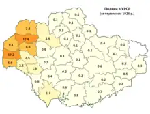 Map showing percentage of population who are of Polish origin in Ukrainian SSR, 1926