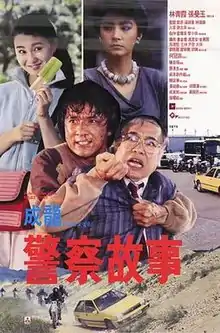 Police Story (Chinese: 警察故事; pinyin: Jǐngchá Gùshì; Jyutping: Ging2 caat3 gu3 si6) is a 1985 Hong Kong action comedy film directed by and starring Jackie Chan, who co-wrote the screenplay with Edward Tang.[1][2][3] It is the first film in the Police Story franchise. It features Chan as Hong Kong police detective "Kevin" Chan Ka-Kui, alongside Brigitte Lin and Maggie Cheung. In the film, Ka-Kui helps arrest a drug lord, but must clear his own name after being accused of murder.