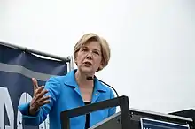 Elizabeth Warren is the senior United States senator from Massachusetts. She is a member of the Democratic Party.[1]