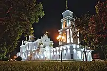 By 1770, Poltava had several brick factories, a regimental doctor, and a pharmacy; that same year the city conducted four fairs.[6] In 1775 it became a city of Novorossiysk Governorate, guarded by the 8th Company of the Dnieper Pike Regiment headquartered in Kobeliaky.[6] In 1775 Poltava's Monastery of the Exaltation of the Cross (Russian: Крестовоздвиженский монастырь, Krestovozdvizhensky Monastyr) became the seat of bishops of the newly created Eparchy (Diocese) of Slaviansk and Kherson. This large new diocese included the lands of the Novorossiya Governorate and the Azov Governorate north of the Black Sea.[9][10]