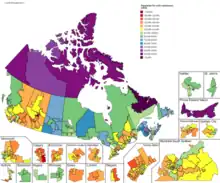 - Statistics Canada - Population and dwelling counts: Canada and federal electoral districts (2013 Representation Order)