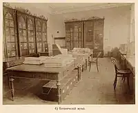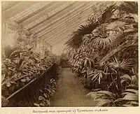The trustee of the Western Siberia educational district and founder of Tomsk State University, Vasily Malkovich Florinsky (Васи́лий Ма́ркович Флори́нский, 1834–1899) invited Krylov to create for Tomsk State University a botanical garden (the first beyond the Urals), as well as a herbarium. In July 1885, Krylov came to Tomsk and brought with him 700 pots of orangery plants for the botanical garden.[1] He immediately began organizing the herbarium in the form of a botanical museum. Construction of the main orangery soon began and 14 greenhouses were prepared. A herb garden with 200 species, an arboretum, a medicinal plant garden and an orchard were created. He created a park in front of the main university building, the so-called university grove (университетская роща).