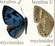Poritia erycinoides, the blue gem,[1] is a small butterfly found in India, Myanmar[2] and parts of South-East Asia[3] that belongs to the lycaenids or blues family.
