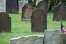 Built in 1845 in Greek revival style, this is the third church on the site. It was listed on the National Register of Historic Places in 2005 as the Reformed Church on Staten Island.[47] The first, a hexagonal wooden building erected in 1714, was destroyed by the British during the revolution. The original building, a long structure around which the community now known as Port Richmond grew, was erected on land donated in 1714 by Governor Hunter. The original license to the Dutch Congregation signed by Governor Hunter in 1714 is preserved.[48] The grounds also serve in commemoration of the Five Brothers from Staten Island who served in the Revolutionary War. The Daughters of the American Revolution recognized the Brothers Mersereau: Joshua - 3rd Quarter Master General, Jacob - Colonel, Cornelius - Soldier, John - Captain, and Paul - Sailor.