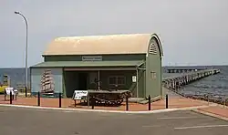The Port Victoria Maritime Museum is a maritime museum located in South Australia, located on the west coast of the Yorke Peninsula in Port Victoria. It is housed in a cargo shed which was brought out from the United Kingdom in kit form in 1877 and was completed in January 1878. [1] Household goods for the early settlers in the town and surrounding farmlands were brought by steamers from Port Adelaide and stored in the cargo shed until the settlers’ homes were completed. [2]