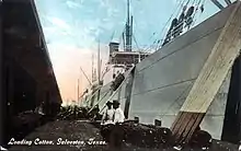 The port survived the Galveston Hurricane of 1900 relatively unscathed, but the railroad connecting the island to the mainland suffered significant damage.[11] In response to the hurricane, city leaders dredged the ship channel to raise the island's grade. As a result, the port was now considered a deep-water port and was able to handle larger ships.[16] By the time World War I began, Galveston "was the leading cotton port in the world, the third-largest exporter of wheat, and an important sugar import center."[16] The port also became a major immigration center, with almost 50,000 people entering the country between 1906 and 1914.[16]