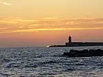 The last Grand Duke of Tuscany Leopold II ordered in 1852 the construction of the Diga Curvilinea (Curvilinear), called Molo Novo from the inhabitants, which delimits to the west the Avamporto. It is a massive construction, built on project by Victor Poirel, formed by a substructure made of artificial rocks while the upper part is surmounted by a wall that protects the Avamporto. The Diga Curvilinea was completed in 1863, it is situated at 800 meters from the harbour and 400 meters from the Fanale dei Pisani, has a length of 1,150 meters with a cord of 1,000 meters and an average width of 8.50 meters.[15] [16]