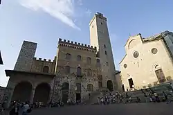 The Communal Palace, once seat of the podestà, is currently home of the town gallery, with works by Pinturicchio, Benozzo Gozzoli, Filippino Lippi, Domenico di Michelino, Pier Francesco Fiorentino and others. From Dante's Hall in the palace, access may be made to a Maesta fresco by Lippo Memmi, as well as the Torre del Podestà or Torre Grossa, 1311, which stands 54 metres (177 ft) high.[16]