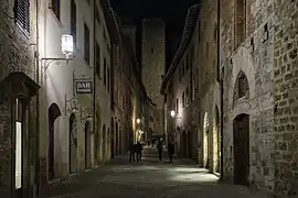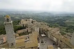 In the Middle Ages and the Renaissance era, it was a stopping point for Catholic pilgrims on their way to Rome and the Vatican, as it sits on the medieval Via Francigena.[8] The city's development was also improved by the trade of agricultural products from the fertile neighbouring hills, in particular saffron, used in both cooking and dyeing cloth and Vernaccia wine, said to inspire popes and poets.[6][9]
