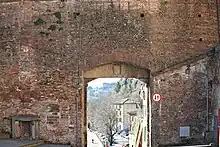 The Porta di Fontebranda or Fontebranda Gate is one of the last remaining gates in the medieval walls of Siena. It is located on via di Fontebranda, in Siena, region of Tuscany, Italy. 43°19′06.79″N 11°19′34.09″E