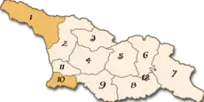 Energy: Poti port - Kulevi - Supsa - Baku-Supsa oil pipeline - Baku-Tbilisi-Ceikhan pipeline - ბაქო-თბილისი-ერზერუმის ნავთობსადენი - ბაქო-ბათუმის ნავთობსადენი - Oléoduc Géorgie-Ukraine-UE - GOGC - Wissol Petroleum - Telasi - Enguri HES - Centrale éléctrique de Khrami - ხუდონჰესი - ლაჯანურჰესი - Centrale hydroéléctrique de Namakhiani - Centrale hydroéléctrique de Samtskhè-Javakhétie - Centrale hydroéléctrique de Tskhinvali - Centrale hydroéléctrique de Tvichi - ვარდნილჰესი - Centrale hydroéléctrique de Jonétie.