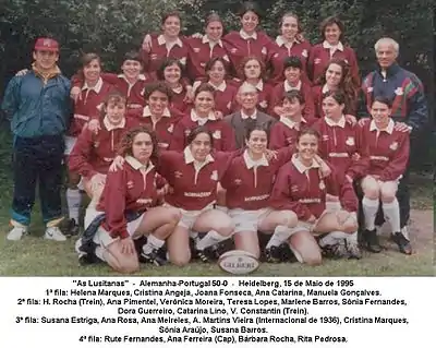 The Portugal national women's rugby union team are a national sporting side of Portugal, representing them at rugby union. They played their first test in 1995 against Germany.