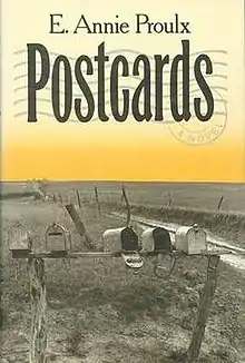Postcards is E. Annie Proulx's 1992 novel about the life and travels of Loyal Blood across the American West. Postcards has been likened by David Bradley to a Great American Novel.[1] It is the predecessor to Proulx's award-winning The Shipping News. Postcards cuts between stories of Loyal's travels and the stories of his family back in Vermont, to whom he sends irregular postcards about his life and experiences. Loyal never leaves a return address, so is unable to hear back from his family and therefore misses all the news from home, including the death of his father and mother, the sale of the family farm, and the marriage of his sister to a virtual stranger.