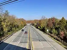 The northern terminus of PA 100 was extended back to Pleasant Corners at US 309 in 1962, replacing the former US 309 designation between Fogelsville and Pleasant Corners that was realigned to present-day PA 309 between Allentown and Pleasant Corners.[26][27] In the 1960s, the Pennsylvania Department of Highways had plans for an expressway along the PA 100 corridor in Chester County that would connect to US 202 in West Chester.[28] In 1968, a freeway was built connecting PA 100 south of Exton to US 202 north of West Chester.[27][29] In the 1970s, PA 100 was widened into a divided highway between Exton and Lionville.[30] The freeway connecting US 202 and PA 100 became known as SR 2023 when the Location Referencing System was established in 1987.[31][32]