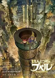 Poupelle of Chimney Town (Japanese: えんとつ町のプペル, Hepburn: Entotsu-machi no Poupelle) is a 2020 Japanese animated fantasy film animated by Studio 4°C, directed by Yusuke Hirota, featuring character designs by Atsuko Fukushima[1][2] and distributed by Toho and Yoshimoto Kogyo. It is based on the 2016 children's picture book of the same name by Akihiro Nishino. The story was adapted as a play on January 21–26, 2020 and a musical on November 14–28, 2021.