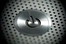 | IEC 60417-5009,[8] the standby symbol (line partially within a broken circle), indicates a sleep mode or low power state. The switch does not fully disconnect the device from its power supply. This may appear on a toggle switch opposite a power on symbol, alone on a pushbutton that places the device into a standby state, or alone on a button that switches between on and standby. Alternatively, under IEEE 1621, this symbol simply means "power".[9] | |